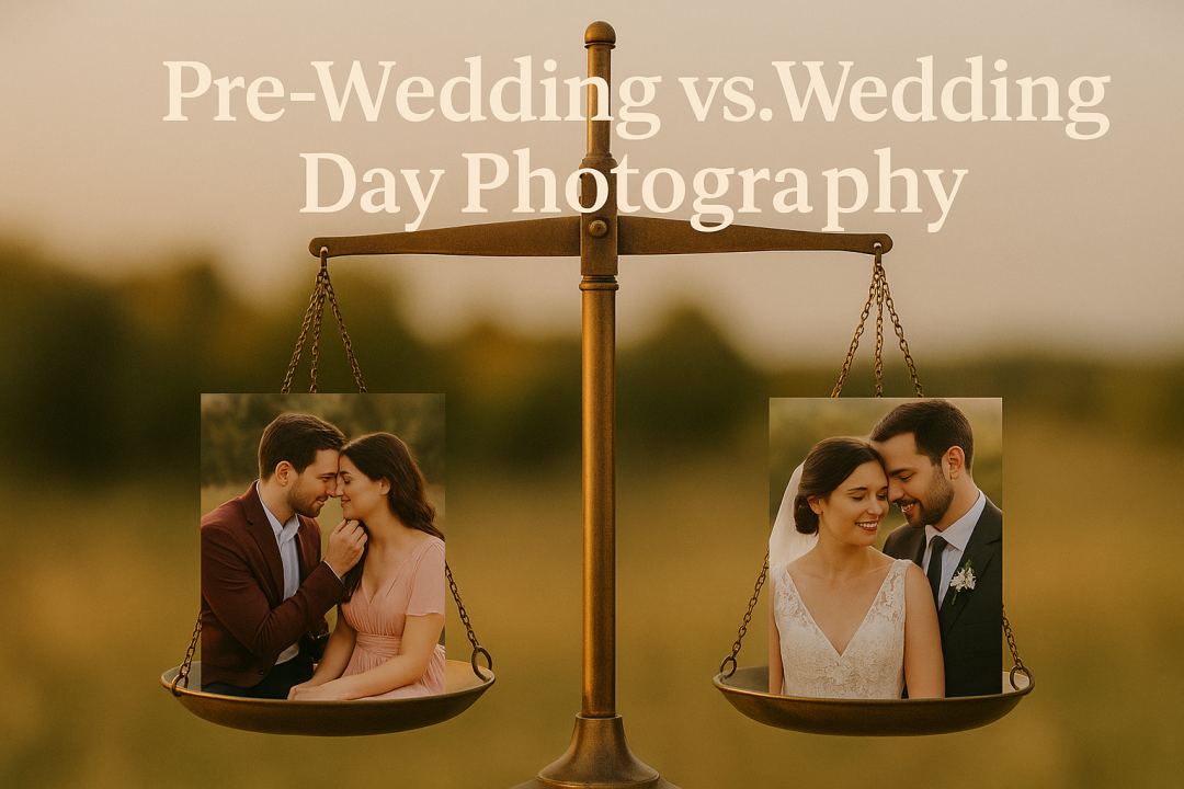 Explore the key differences between pre-wedding and wedding day photography—from purpose and styling to timing and budget. Discover why both are essential to telling your complete love story.