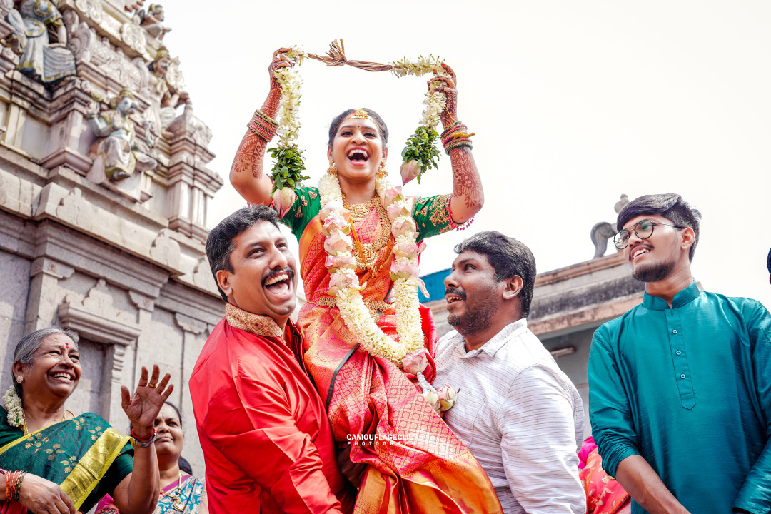 Though vidaai is more common in North Indian weddings, a South Indian version of the bride’s send-off still carries immense emotional weight. The bride, leaving her parental home to begin a new chapter, is often teary-eyed, while her parents and siblings struggle to hold back their emotions. It’s a bittersweet moment of love, change, and growth. This is where a photographer needs to be both invisible and sensitive—capturing real tears, tight hugs, and the soft goodbyes that say so much without words. A single shot from this moment can become the most cherished one in the entire album.